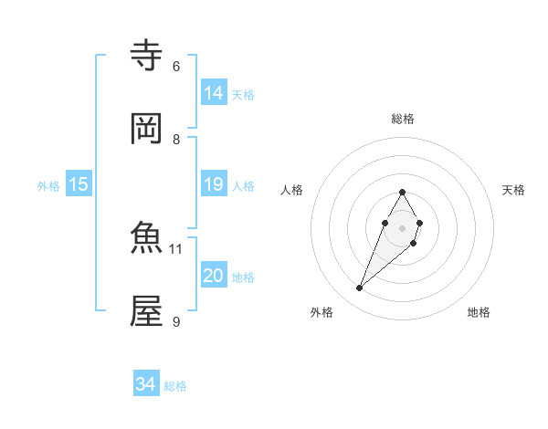 寺岡 魚屋さんを姓名の画数から五運を鑑定