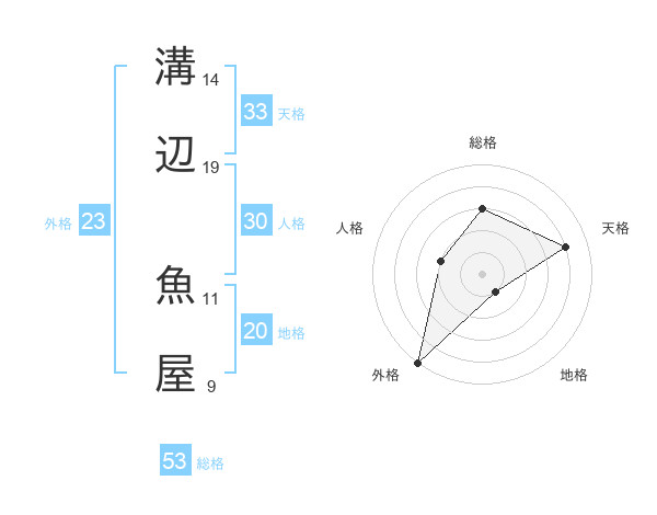溝辺 魚屋さんの総格は53画の3点!