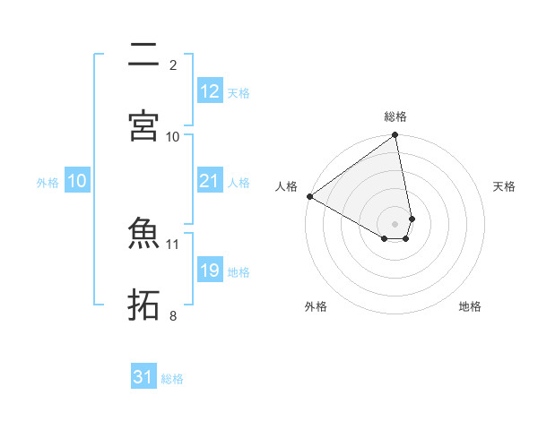 二宮 魚拓さんの総格は31画の5点!