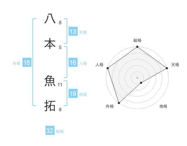 八本 魚拓さんの天格は13画の5点!
