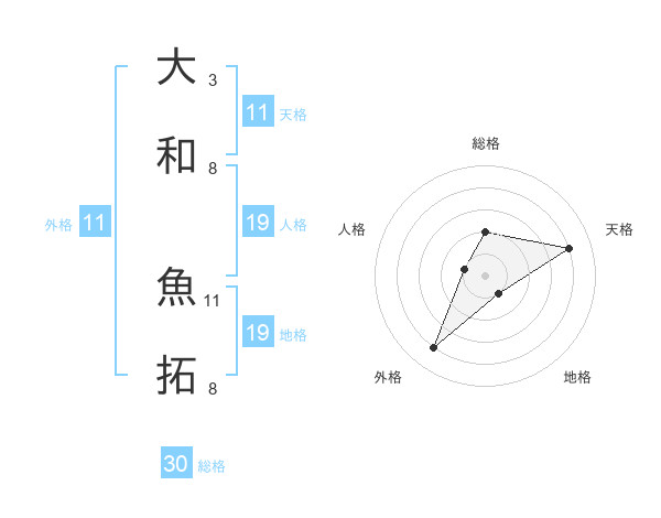 大和 魚拓さんの総格は30画の2点!