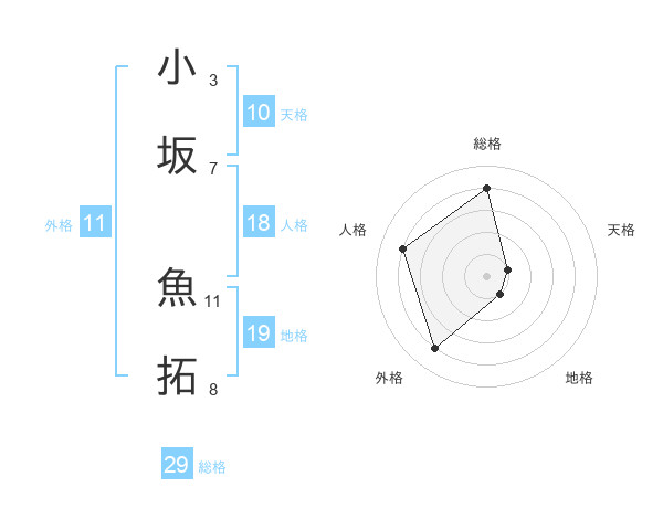 小坂 魚拓さんの総格は29画の4点!