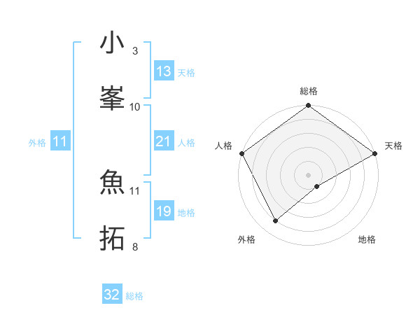 小峯 魚拓さんの総格は32画の5点!