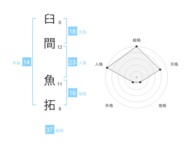 臼間 魚拓さんの総格は37画の5点!