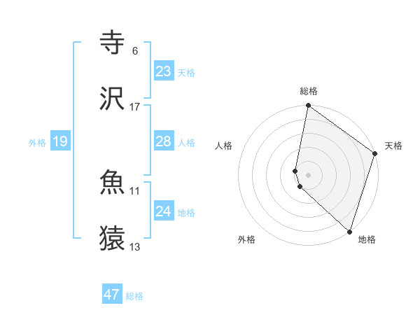 寺沢 魚猿さんの総格は47画の5点!