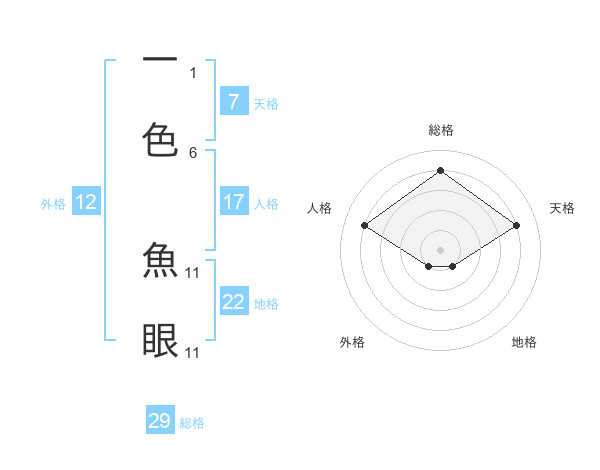 一色 魚眼さんを姓名の画数から五運を鑑定