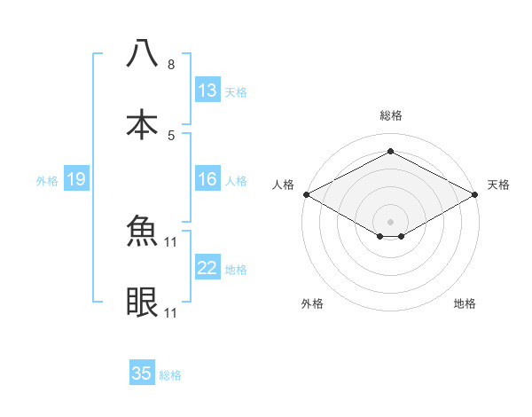 八本 魚眼さんの総格は35画の4点!