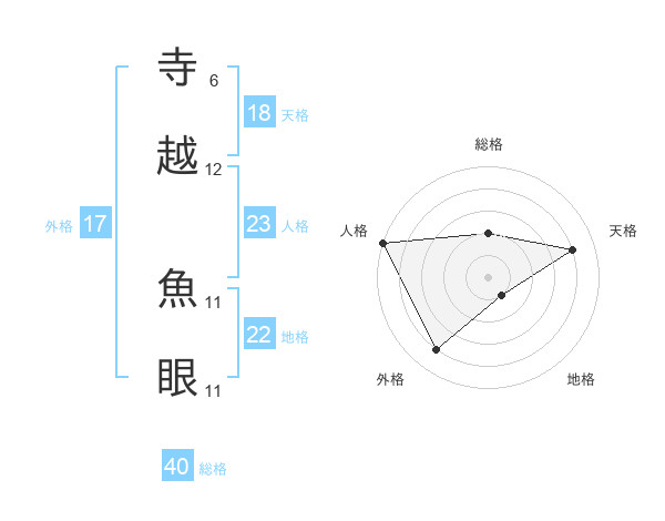 寺越 魚眼さんの総格は40画の2点!