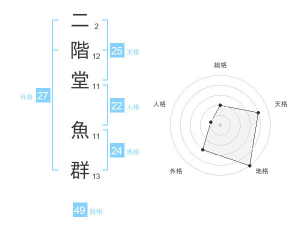 二階堂 魚群さんを姓名の画数から五運を鑑定