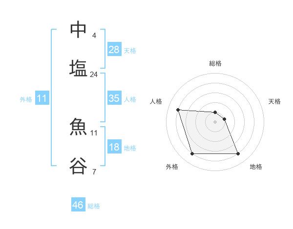 中塩 魚谷さんを姓名の画数から五運を鑑定