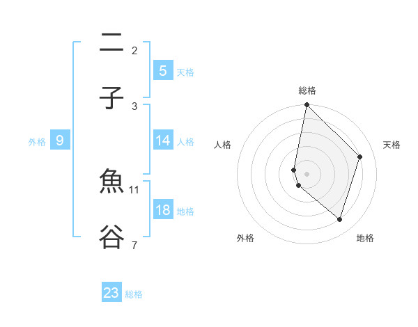 二子 魚谷さんの総格は23画の5点!