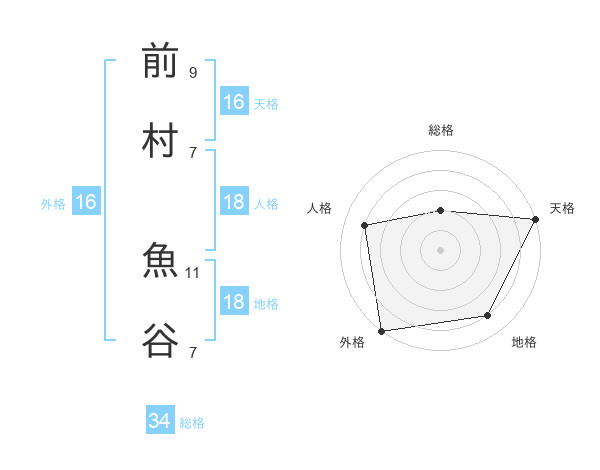 前村 魚谷さんの総格は34画の2点!