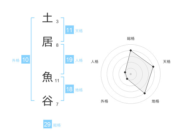 土居 魚谷さんを姓名の画数から五運を鑑定