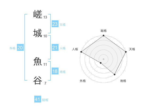 嵯城 魚谷さんを姓名の画数から五運を鑑定