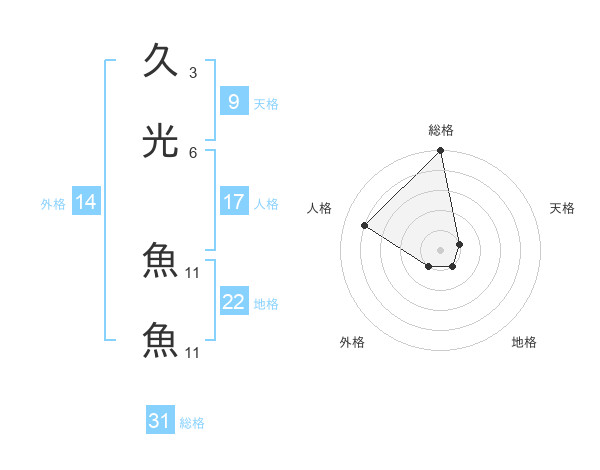 久光 魚魚さんを姓名の画数から五運を鑑定