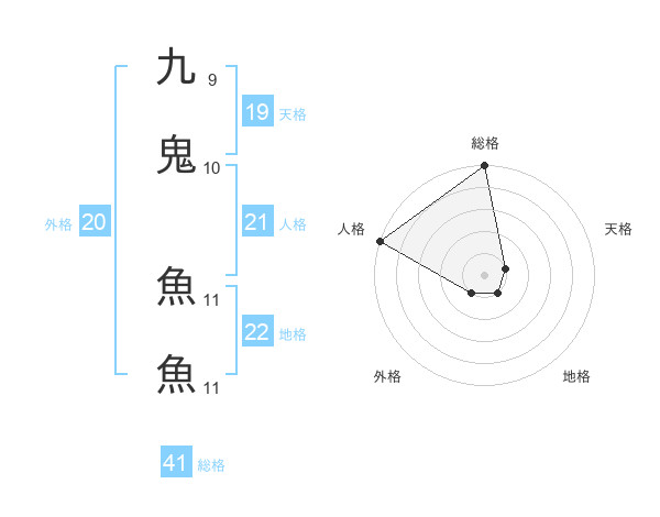 九鬼 魚魚さんを姓名の画数から五運を鑑定