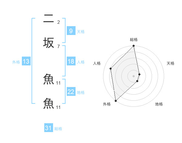 二坂 魚魚さんの外格は13画の5点!