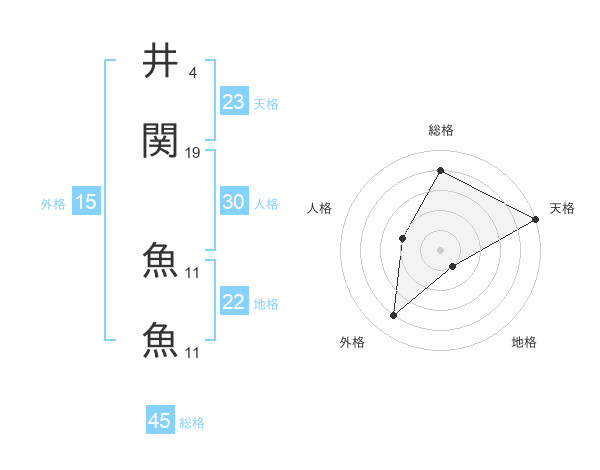 井関 魚魚さんを姓名の画数から五運を鑑定