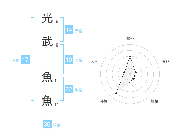 光武 魚魚さんの総格は36画の3点!