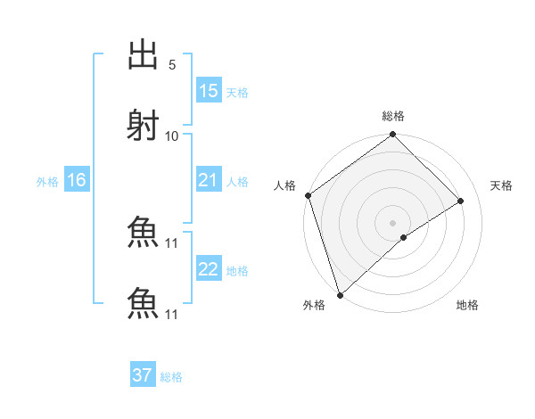 出射 魚魚さんの総格は37画の5点!
