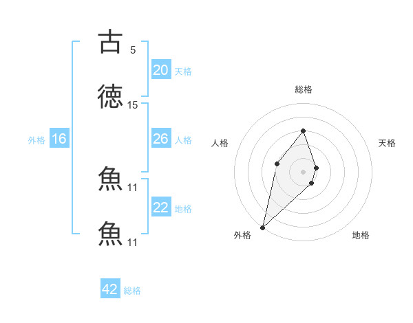 古徳 魚魚さんの外格は16画の5点!