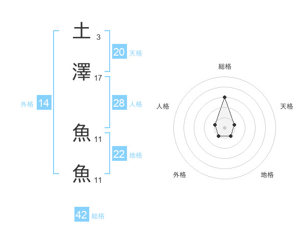 土澤 魚魚さんを姓名の画数から五運を鑑定