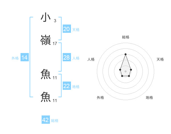 小嶺 魚魚さんの総格は42画の3点!