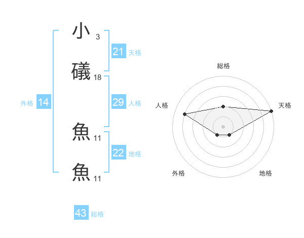 小礒 魚魚さんの総格は43画の2点!
