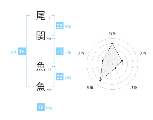 尾関 魚魚さんの総格は48画の4点!