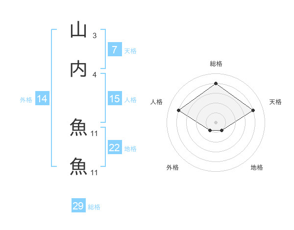 山内 魚魚さんを姓名の画数から五運を鑑定
