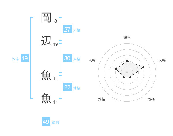 岡辺 魚魚さんを姓名の画数から五運を鑑定