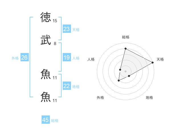 徳武 魚魚さんの総格は45画の4点!