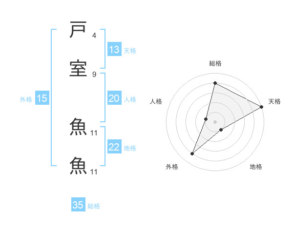 戸室 魚魚さんを姓名の画数から五運を鑑定