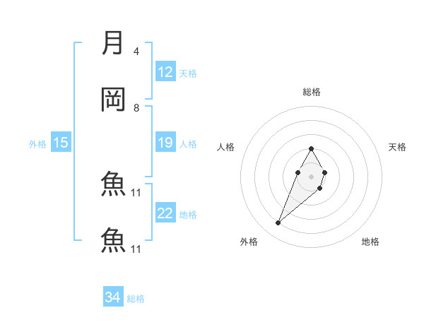 月岡 魚魚さんの総格は34画の2点!