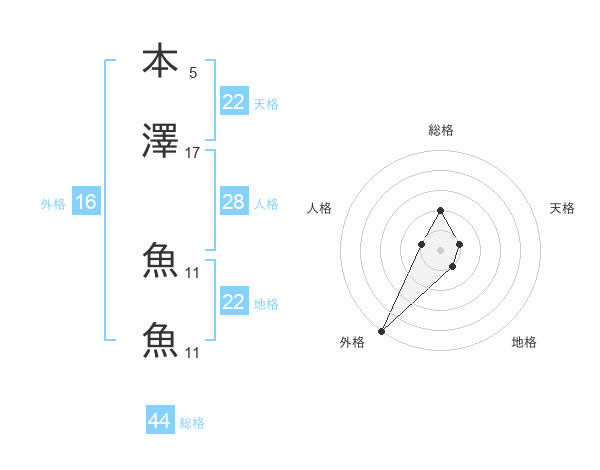 本澤 魚魚さんの総格は44画の2点!
