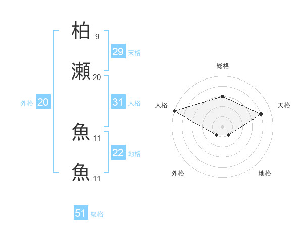 柏瀬 魚魚さんの総格は51画の3点!