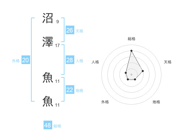 沼澤 魚魚さんの総格は48画の4点!