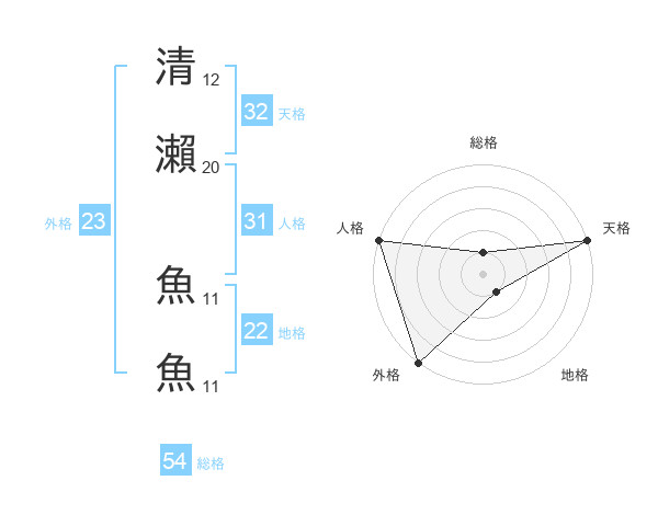 清瀨 魚魚さんを姓名の画数から五運を鑑定