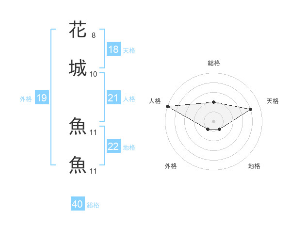 花城 魚魚さんを姓名の画数から五運を鑑定