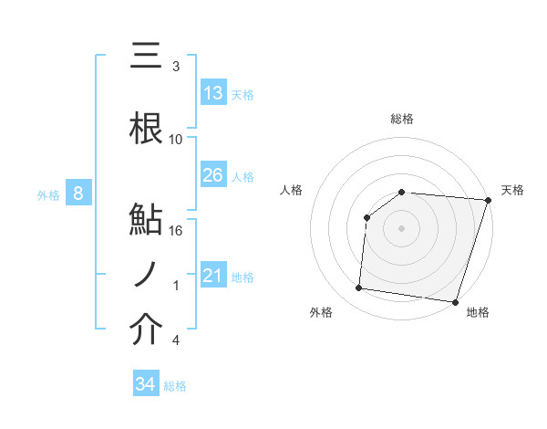 三根 鮎ノ介さんを姓名の画数から五運を鑑定