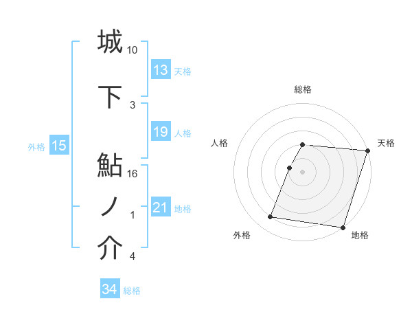 城下 鮎ノ介さんを姓名の画数から五運を鑑定
