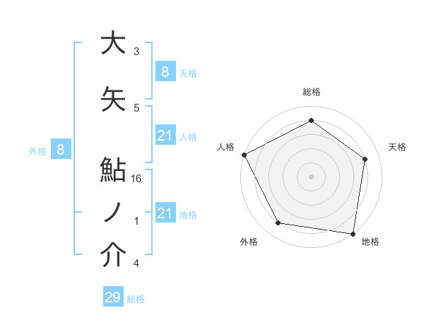 大矢 鮎ノ介さんを姓名の画数から五運を鑑定