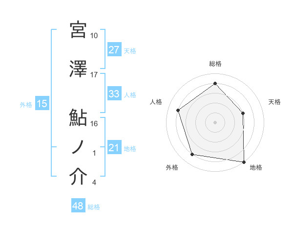 宮澤 鮎ノ介さんの総格は48画の4点!