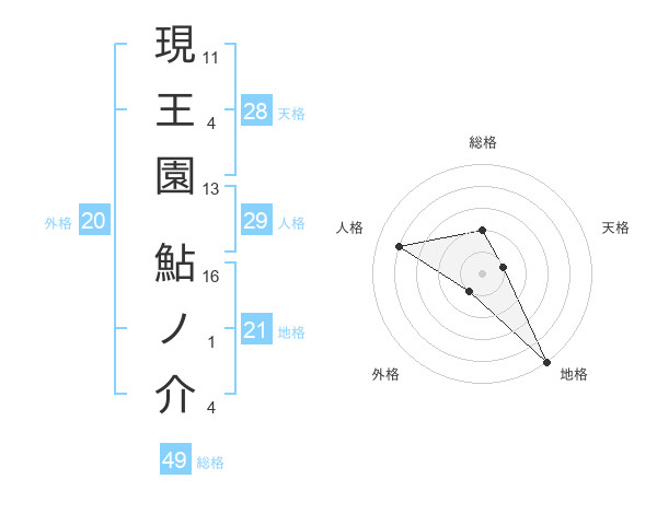 現王園 鮎ノ介さんの地格は21画の5点!