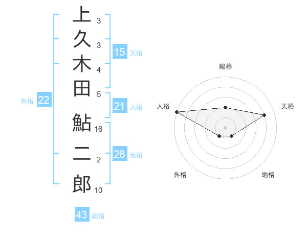 上久木田 鮎二郎さんを姓名の画数から五運を鑑定