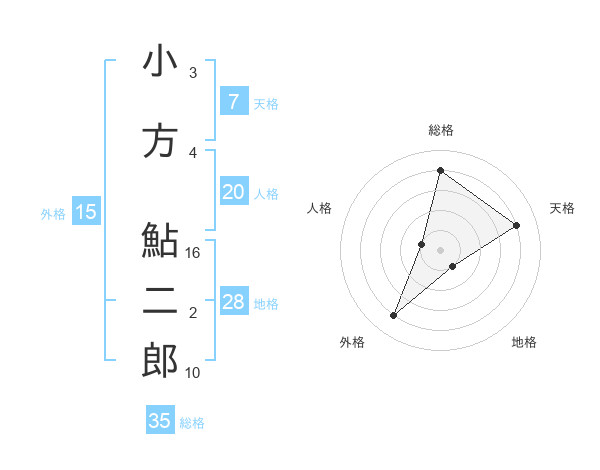 小方 鮎二郎さんの総格は35画の4点!