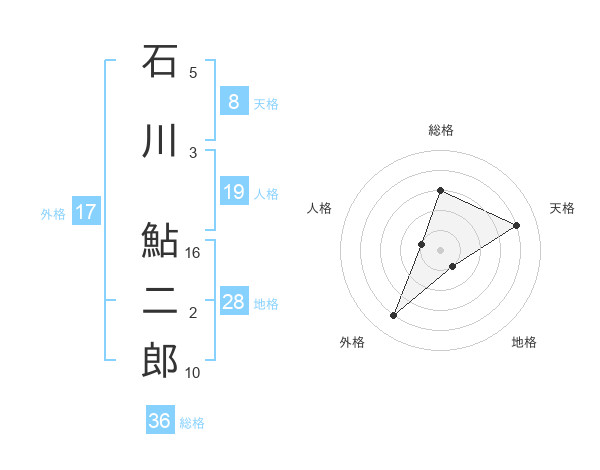 石川 鮎二郎さんを姓名の画数から五運を鑑定