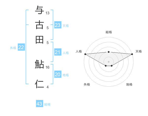 与古田 鮎仁さんを姓名の画数から五運を鑑定