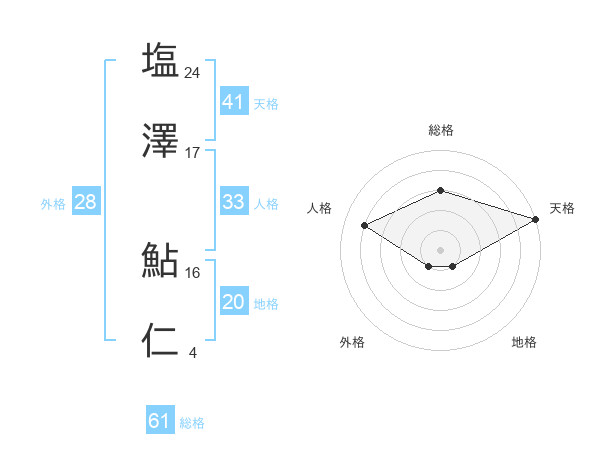 塩澤 鮎仁さんの総格は61画の3点!