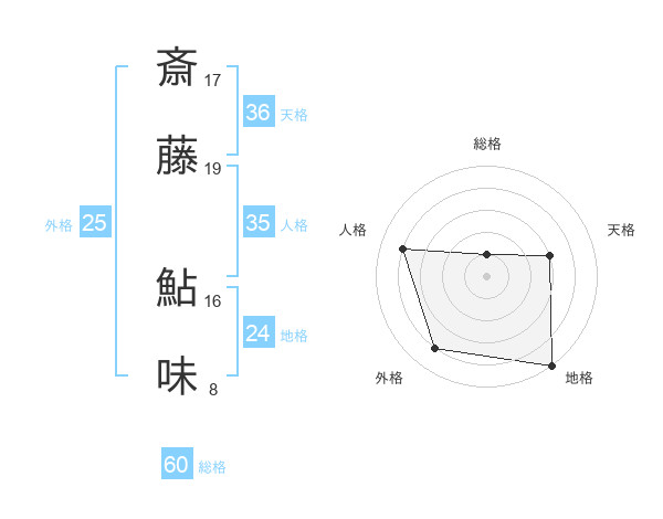斎藤 鮎味さんを姓名の画数から五運を鑑定